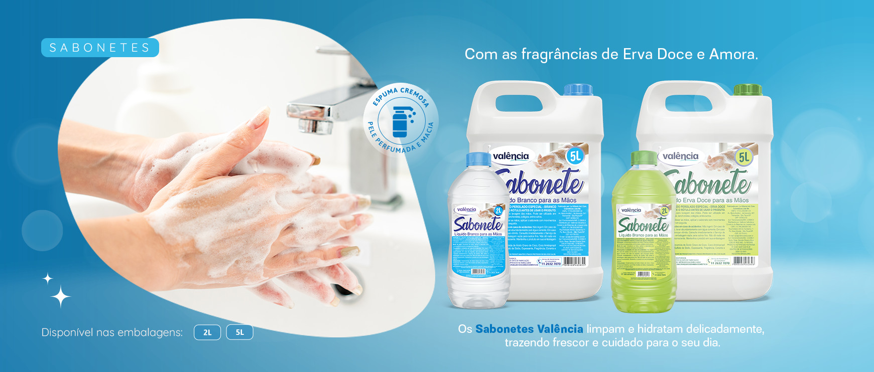 Em duas diferentes fragrâncias, Erva Doce e Pimenta Rosa, a Linha de Sabonetes Valência limpa e higieniza a pele sem causar ressecamento.